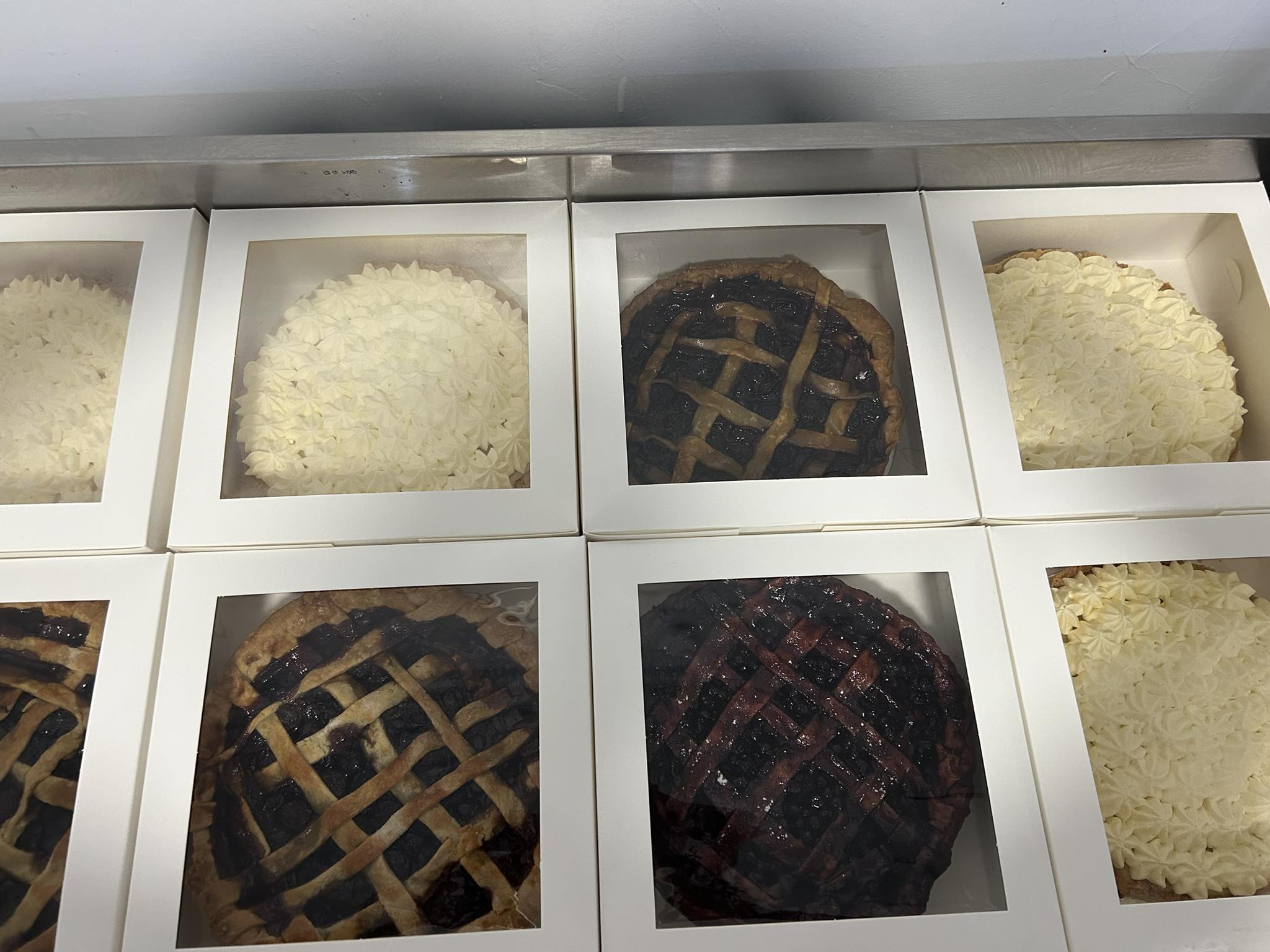 Authentic and freshly baked in-house, our selection includes Apple crumble pie, Cherry pie, Strawberry and Rhubarb pie.